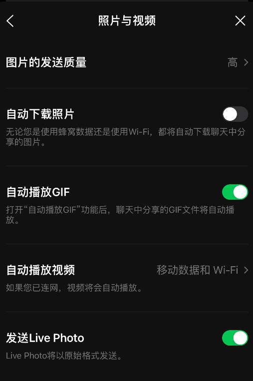 【仅限 Wi-Fi】或直接选择【停用】。 - 同理,如果您不常看动图,可以一并关闭